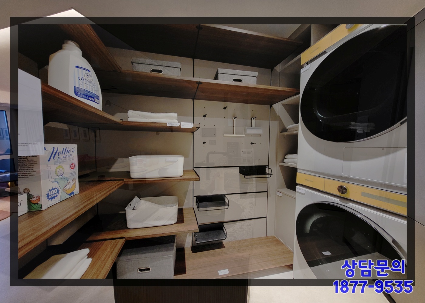 주방(廚房)쪽으로는 식료품(食料品)들을 저장(貯藏), 보관(保管)할 수 있는 수납(收納)에 용이(容易)한 펜트리룸이 마련되며 세탁실도(洗濯室度) 1층(層)에 있고 자리하는데요.