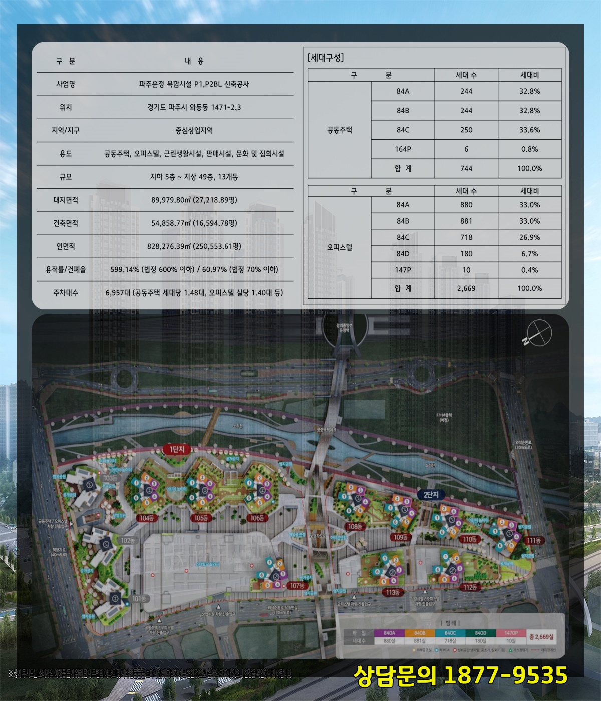 이곳은 아파트 744세대(世代)에 주거형(住居型) 오피스텔이 2669실로서 총(總) 3413세대(世代)라는 대단지(大團地) 중(中)에서도 매머드급(級)으로 자리할 예정(豫定)에 있는데요.