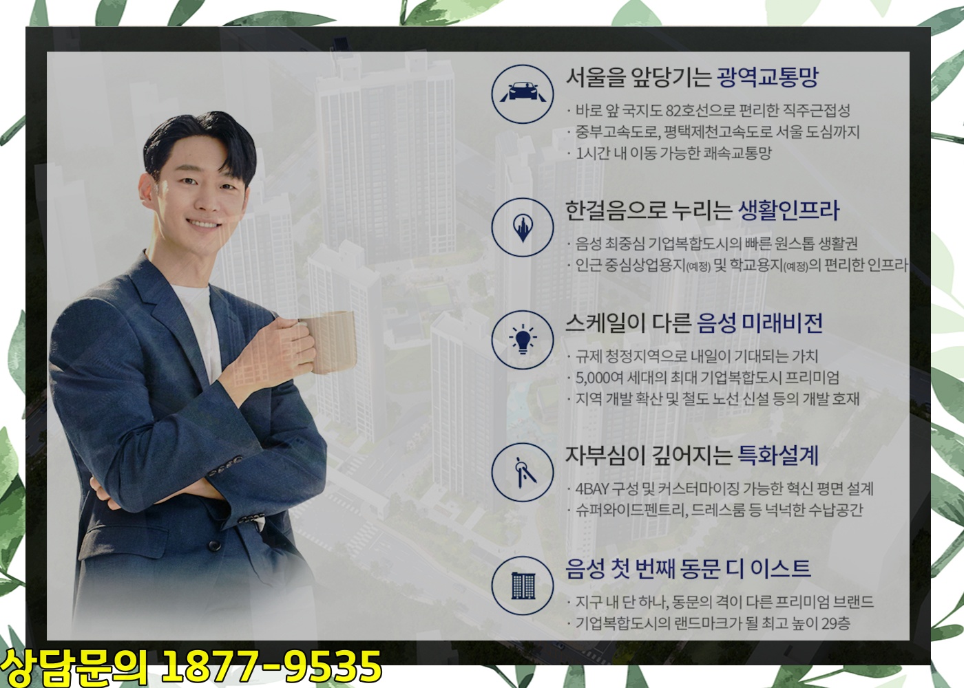 풍부(豐富)한 일자리와 함께 대규모(大規模) 신규(新規) 주택(住宅) 그리고 중심상업지역(中心商業地域) 등(等)이 함께 하고 있어서 음성(音聲)의 대표적(代表的)인 신도심(新都心)으로 성장(成長)이 기대(期待)되는 위치(位置)이죠.