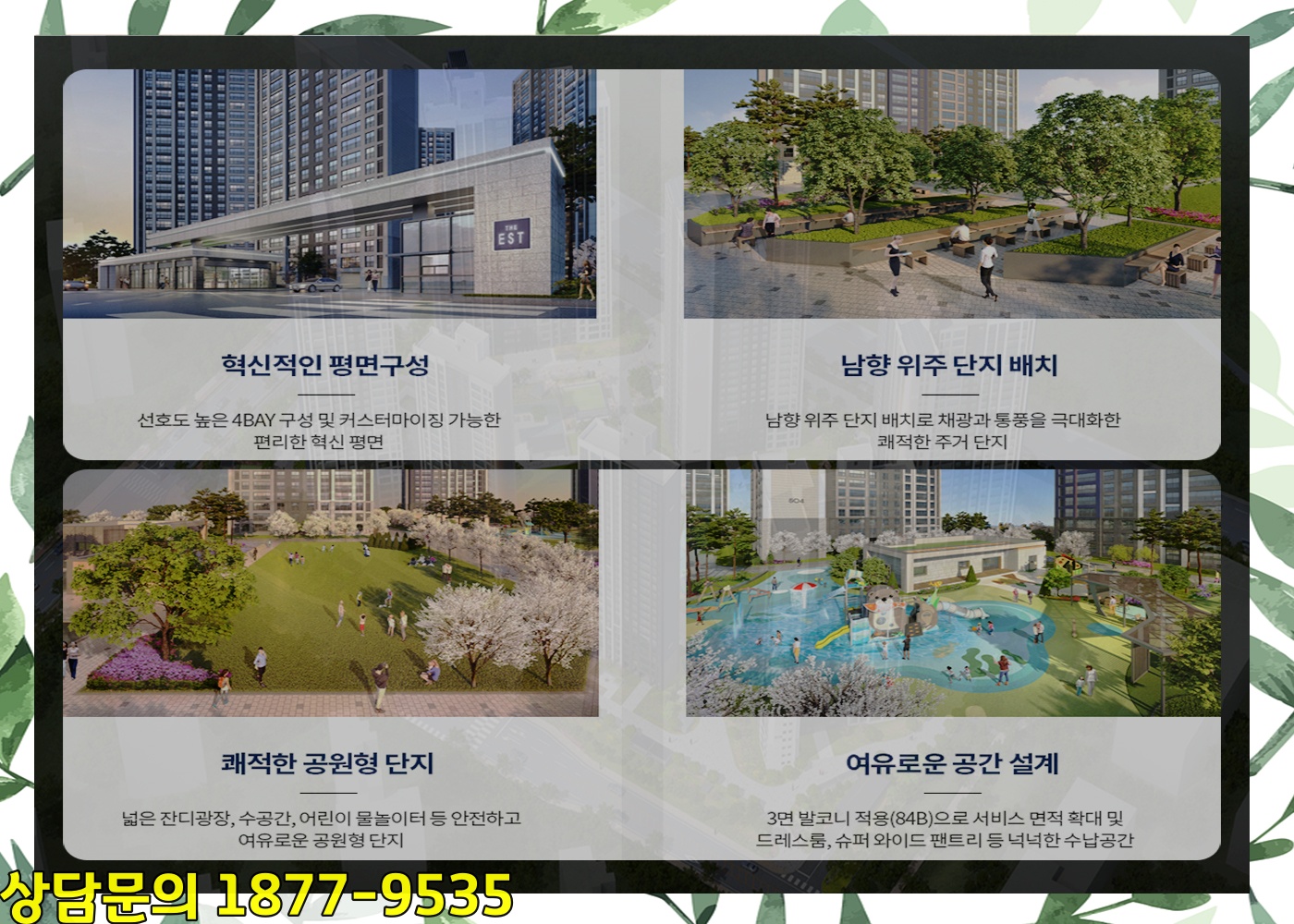 중앙(中央)에는 잔디광장(廣場)과 수공간(數空間), 북가(北家)든 그리고 어린이놀이터, 유아(幼兒)놀이터 등(等)이 넓게 조성(造成)되어 가족(家族)들이 함께 즐길 수 있는 공원(公園) 같은 분위기(雰圍氣)를 연출(演出)하고 있는데요.