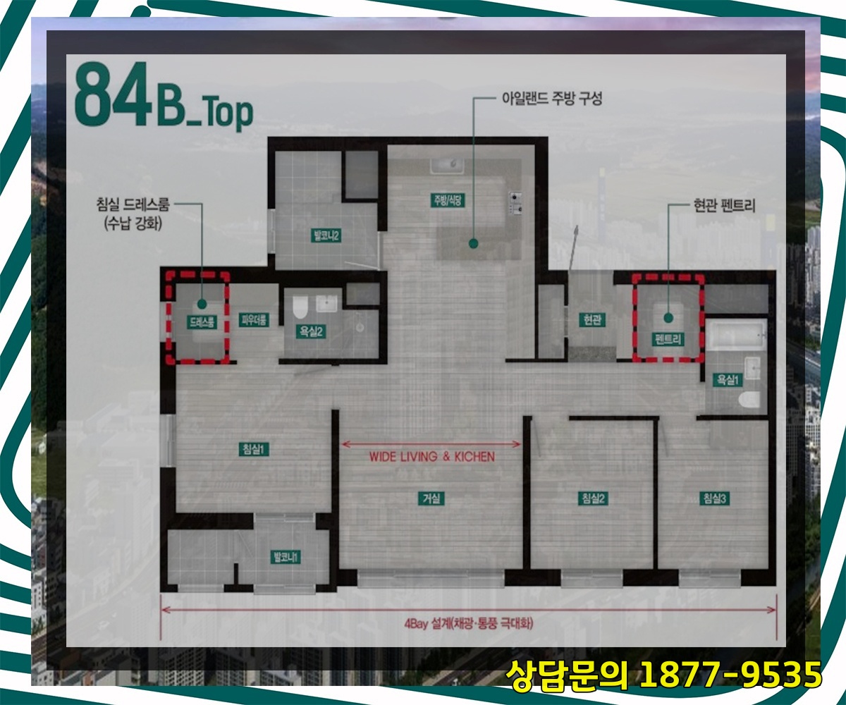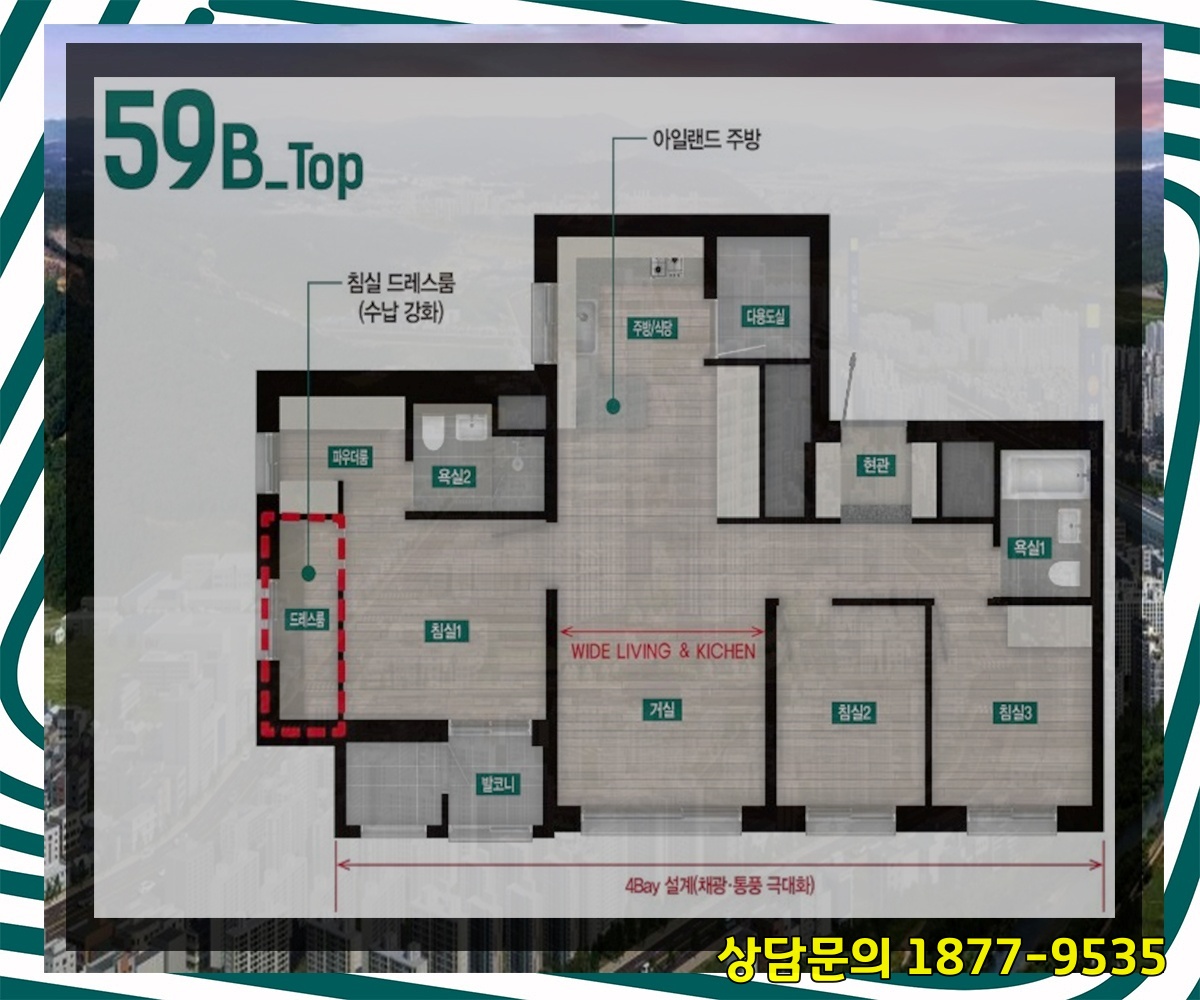 특히(特히) C타입의 경우(境遇)엔 수납(收納)에 더 신경(神經)을 쓴 구조(構造)로 대형(大型)펜트리 공간(空間)을 제외(除外)한 안방(안房)의 드레스룸과 더불어 침실(寢室)3에도 드레스룸이 배치(配置)되기때문에 혹시나(或是나) 수납(收納)이 걱정이 되거나 수납(收納)이 많은걸 선호(選好)하는 분들에게는 딱 좋은 구조(構造)라 할 수 있습니다.