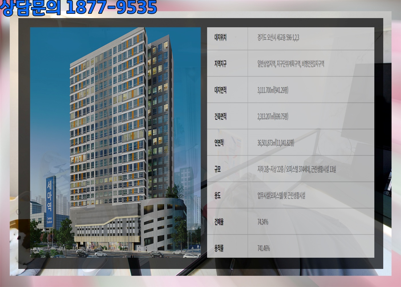 오산 오피스텔 중(中)에서도 가장 가까운 초역세권(超驛勢圈)의 입지(立地)를 가진다는 그 사실(事實) 하나만으로 충분(充分)히 메리트가 있는 곳인데요.